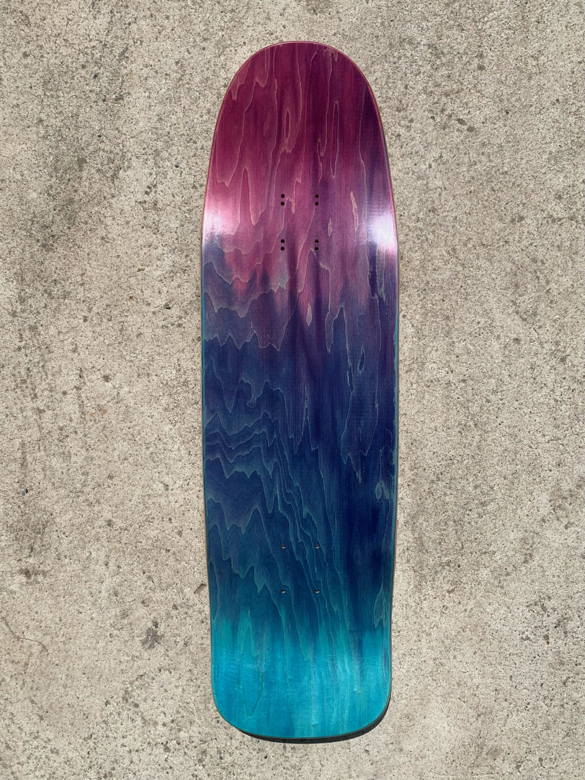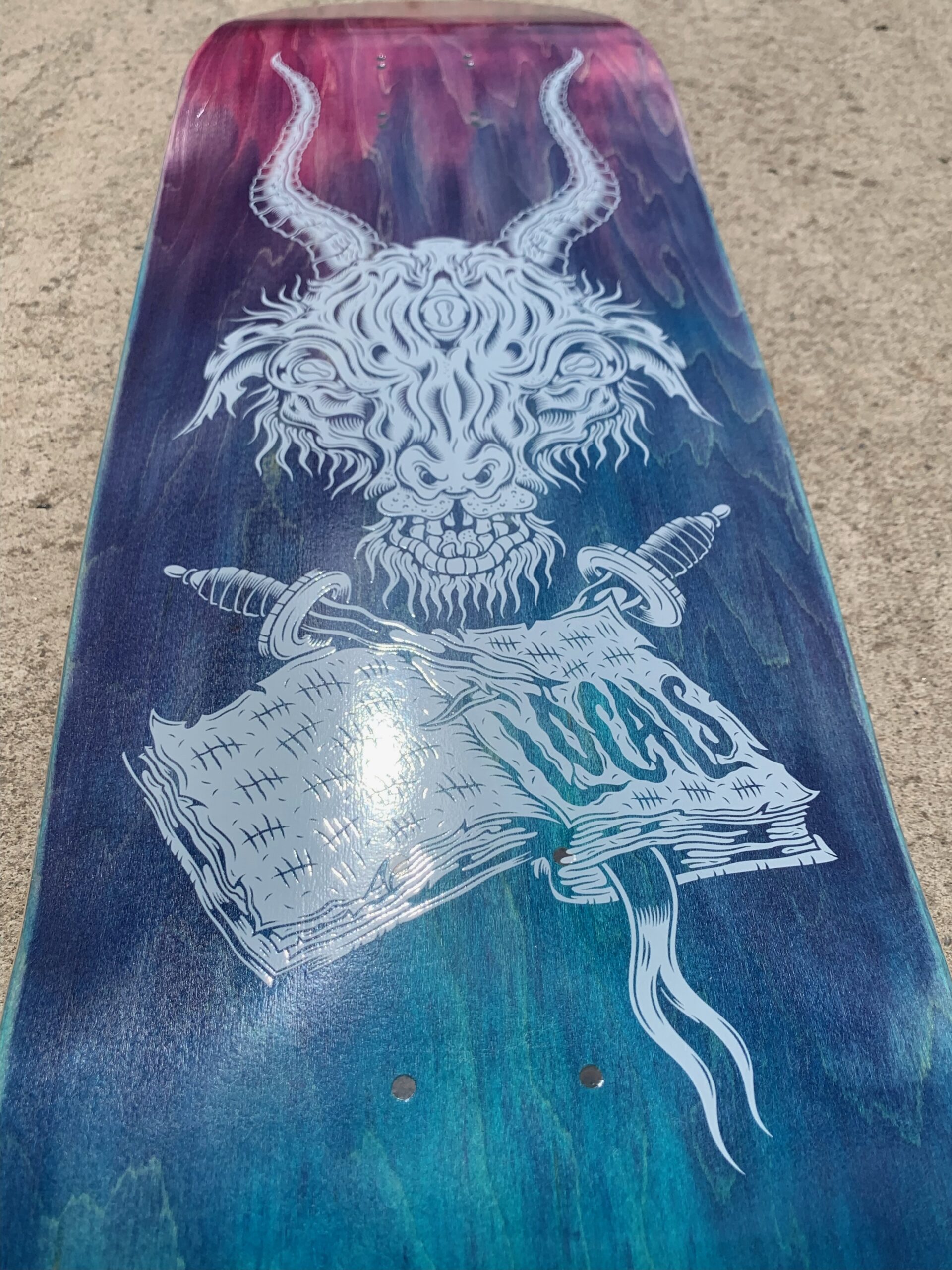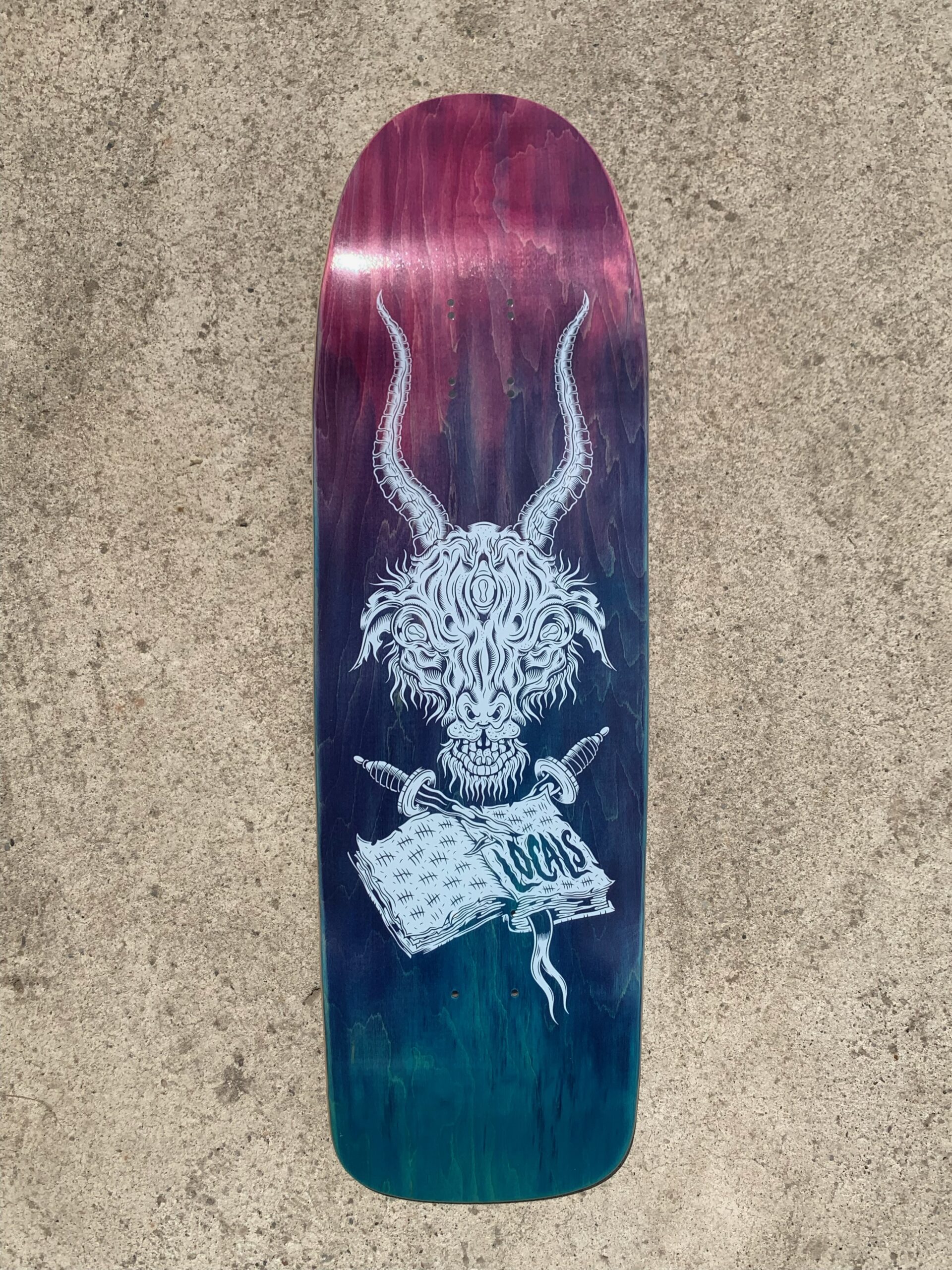 Locals Goat Shaped Shaped 9,6 deck 7 veneers of high quality hard canadian maple Double colour stained bottom veneer Double drilled wheelbase 14,25/14.75 Medium radial concave Griptape for free.